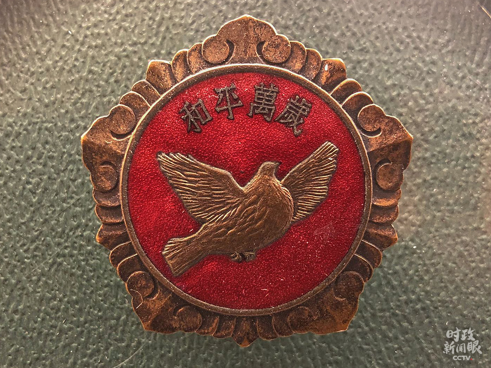 △這是第三屆赴朝慰問團(tuán)贈給志愿軍的和平萬歲紀(jì)念章。(總臺央視記者許永松拍攝)