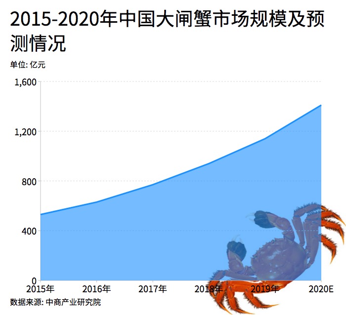 大閘蟹又被稱為中華絨螯蟹,分布在我國北起遼河南至珠江,其中以長江水系產(chǎn)量最大。近年來隨著消費者對大閘蟹的喜愛程度的提高,其市場需求不斷增長。據(jù)相關(guān)數(shù)據(jù)統(tǒng)計2018年大閘蟹產(chǎn)量高達80萬噸左右,產(chǎn)業(yè)規(guī)模2019年突破億元,年增速約20%。據(jù)預(yù)測,到2020年我國大閘蟹市場規(guī)?;蚪咏?500億元。