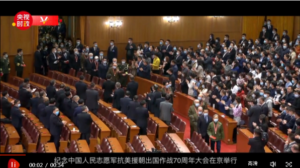 23日,大會開幕前的一個“畫面”讓很多人淚目:志愿軍老戰(zhàn)士、老同志入場,現(xiàn)場全體起立并鼓掌,在入場的十多分鐘期間,掌聲一直在持續(xù)。