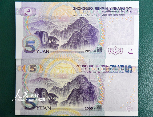 2020年11月5日,中國人民銀行發(fā)行2020年版第五套人民幣5元紙幣。據(jù)了解,2020年版第五套人民幣5元紙幣保持2005年版第五套人民幣5元紙幣規(guī)格、主圖案、主色調(diào)、“中國人民銀行”行名、國徽、盲文面額標記、漢語拼音行名、民族文字等要素不變,優(yōu)化了票面結(jié)構(gòu)層次與效果,提升了整體防偽性能,票面年號改為“2020年”。郝群英/人民圖片