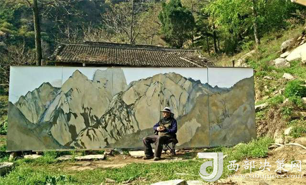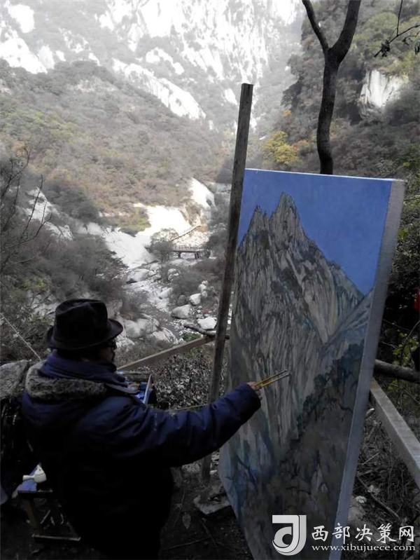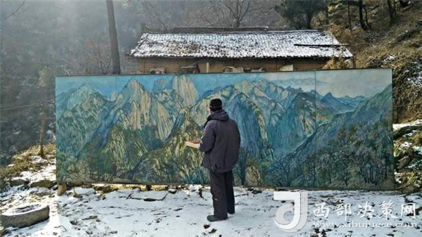 值得提起的是,田學森在華山十年,每幅畫都是在現場揮筆完成。美術界有些常用的省時省力的畫法,田學森都不喜歡去做。他喜歡與畫框共同經歷自然環(huán)境的時間和空間,為千古華山寫照,表達對華山的感悟和敬意。他說,“華山是頂天立地的脊梁,我們每個人走的路,都是尋脈的過程。”