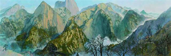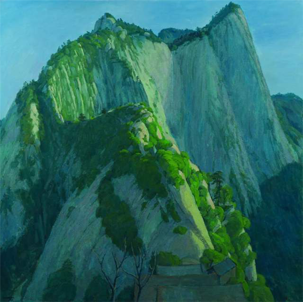 田學森離開繁華的大都市,懷著一顆敬畏自然,與天地精神交流的向往,感受華山的厚重,殉道般的投入創(chuàng)作。甘于寂寞,獨處華山十年,借鑒傳統(tǒng)山水畫意境,用油畫材料技法嘗試為千古華岳寫照。
