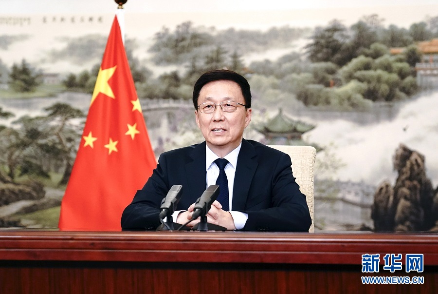 11月10日,博鰲亞洲論壇國際科技與創(chuàng)新論壇首屆大會開幕式在澳門舉行。中共中央政治局常委、國務院副總理韓正以視頻方式發(fā)表主旨演講?!⌒氯A社記者 丁林 攝