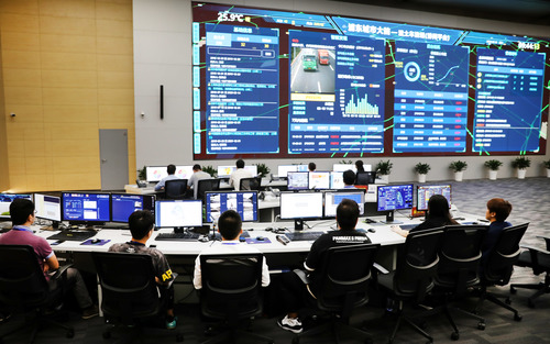 工作人員在上海市浦東新區(qū)城市運行管理中心內(nèi)工作(2019年8月31日攝)。新華社記者 方喆 攝