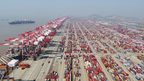 陸家嘴的大屏上不斷跳動的數(shù)字,恰似中國金融市場的強勁脈搏;張江的實驗室里,科研人員凝神聚氣,探究未知的秘密;東海之濱的洋山港內(nèi),塔吊林立、舟車穿梭,“無人碼頭”源源不斷輸出“中國制造”……