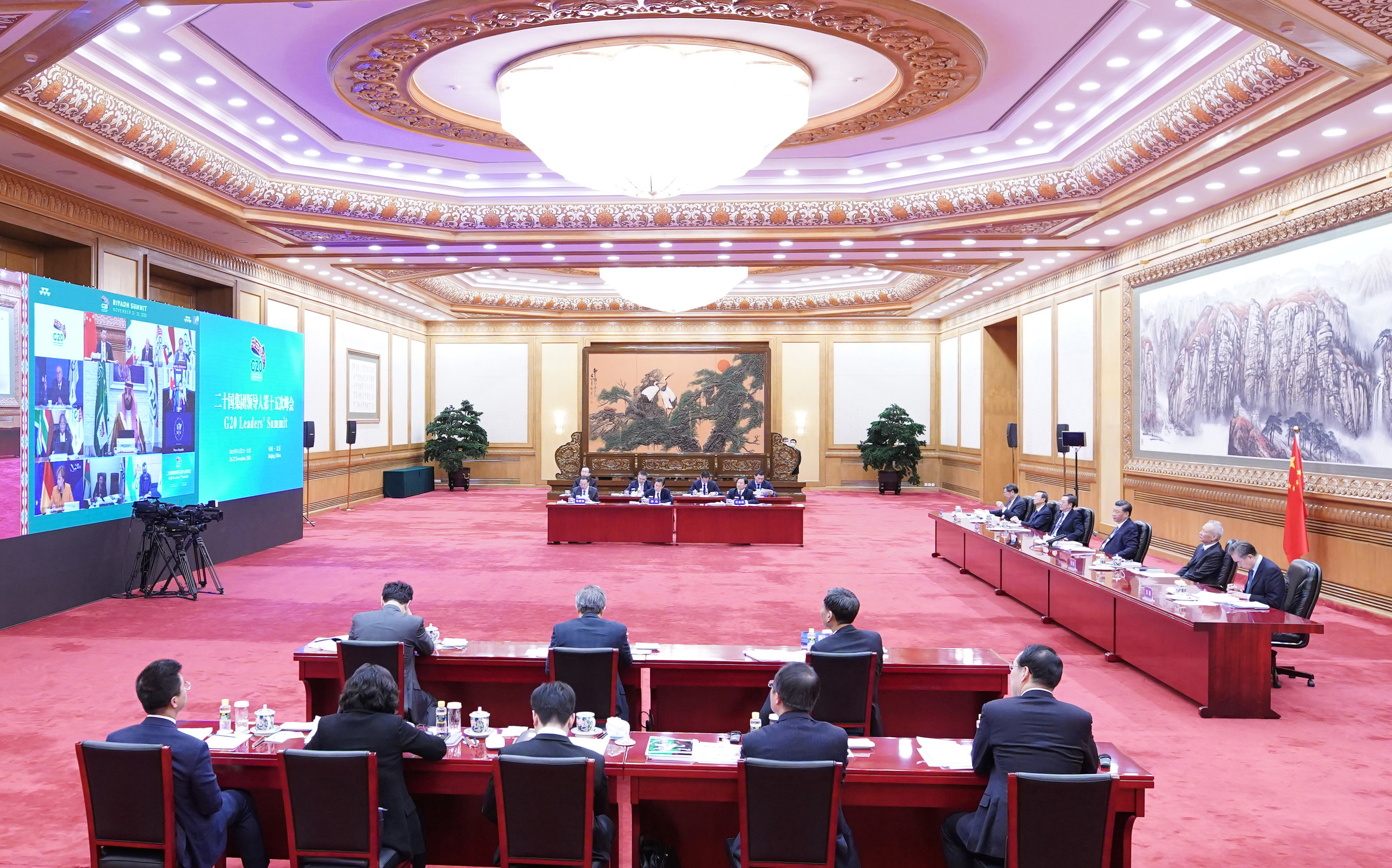 國家主席習近平21日晚在北京以視頻方式出席二十國集團領(lǐng)導人第十五次峰會第一階段會議并發(fā)表題為《勠力戰(zhàn)疫 共創(chuàng)未來》的重要講話,強調(diào)二十國集團應該遵循共商共建共享原則,堅持多邊主義、開放包容、互利合作、與時俱進,在后疫情時代國際秩序和全球治理方面發(fā)揮更大引領(lǐng)作用。中國愿同各國相互尊重、平等互利、和平共處、共同發(fā)展,共同推動構(gòu)建人類命運共同體。