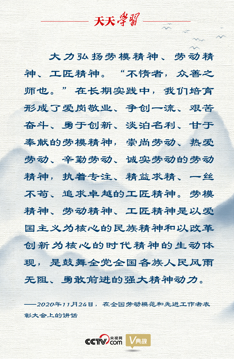 在講話中,習(xí)近平總書記還用“不惰者,眾善之師也”這句古語,深刻詮釋勞模精神、勞動精神、工匠精神的實(shí)質(zhì),指出勞模精神、勞動精神、工匠精神是以愛國主義為核心的民族精神和以改革創(chuàng)新為核心的時代精神的生動體現(xiàn),是鼓舞全黨全國各族人民風(fēng)雨無阻、勇敢前進(jìn)的強(qiáng)大精神動力。