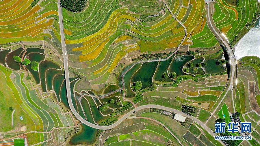 內(nèi)蒙古烏蘭浩特市三合村的稻田(9月5日攝)。 新華社發(fā)(畢力格 攝)
