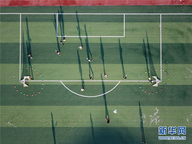 12月1日,在灤平縣第五小學(xué),棍網(wǎng)球隊(duì)員在進(jìn)行訓(xùn)練(無人機(jī)照片)。新華社發(fā)(王立群 攝)