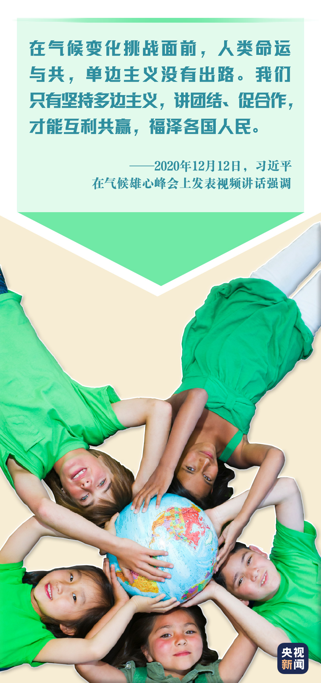 氣候變化是全球面臨的重大風(fēng)險(xiǎn)和長(zhǎng)期挑戰(zhàn),關(guān)乎人類命運(yùn)。只有世界各國攜手合作,堅(jiān)持多邊主義,堅(jiān)持綠色低碳循環(huán)發(fā)展,才能有效應(yīng)對(duì)這一全球性挑戰(zhàn)。