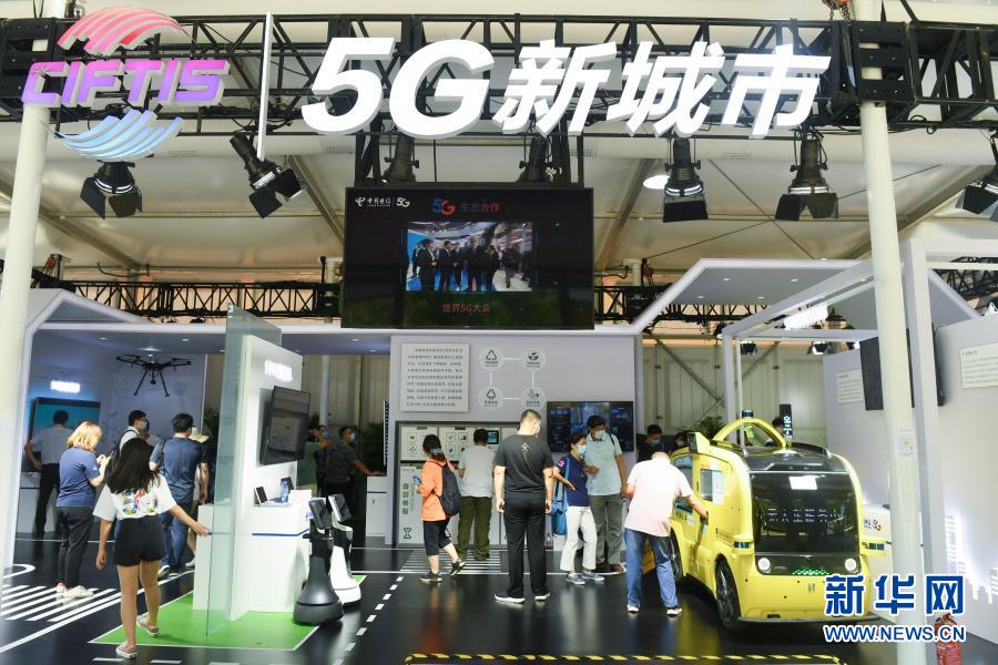 觀眾在2020年中國國際服務貿易交易會5G通信服務專題展區(qū)參觀(9月7日攝)。新華社記者 魯鵬 攝