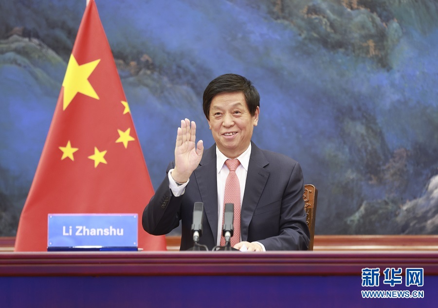 1月18日,全國(guó)人大常委會(huì)委員長(zhǎng)栗戰(zhàn)書(shū)在北京人民大會(huì)堂出席全國(guó)人大和柬埔寨國(guó)會(huì)視頻交流活動(dòng)開(kāi)幕式?!⌒氯A社記者 丁林 攝
