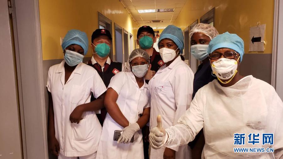 2020年5月26日,中國抗疫醫(yī)療專家組在剛果(布)首都布拉柴維爾指導(dǎo)新冠肺炎病房建設(shè)時,與當(dāng)?shù)匾痪€醫(yī)務(wù)人員合影。新華社發(fā)