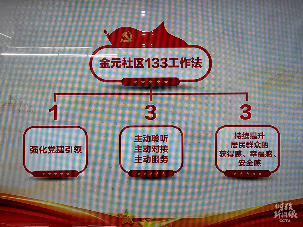 △金元社區(qū)的“133工作法”,“1”是強(qiáng)化黨建引領(lǐng),第一個(gè)“3”是社區(qū)工作要“主動(dòng)聆聽、主動(dòng)對接、主動(dòng)服務(wù)”。(總臺央視記者楊立峰拍攝)