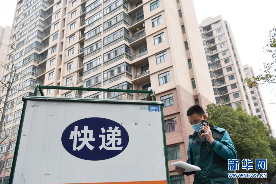 2月11日,中國郵政攬投員劉元元在安徽省合肥市青陽路社區(qū)一處居民小區(qū)內派送快遞。新華社記者 張端 攝