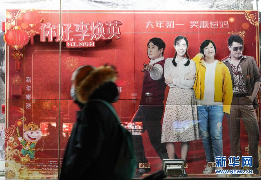 2月17日,在北京的中影國際影城外,市民從電影《你好,李煥英》海報前走過。新華社記者 陳鐘昊 攝