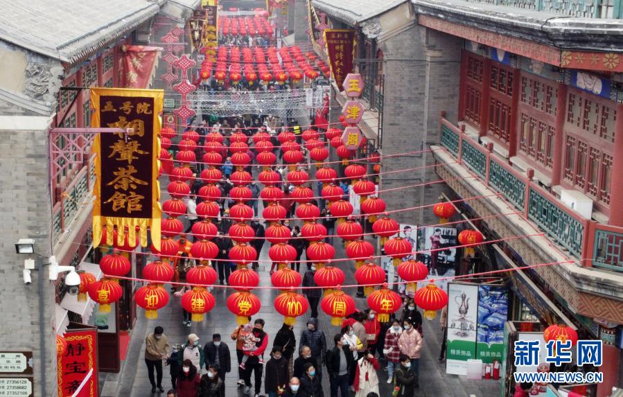 2月13日,游客在天津古文化街游覽(無人機照片)。新華社記者 趙子碩 攝