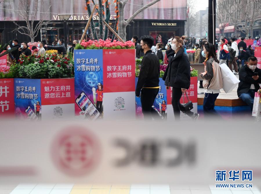 春節(jié)期間,“數(shù)字王府井 冰雪購物節(jié)”數(shù)字人民幣紅包試點活動在王府井大街進行(2月12日攝)。新華社記者 張晨霖 攝