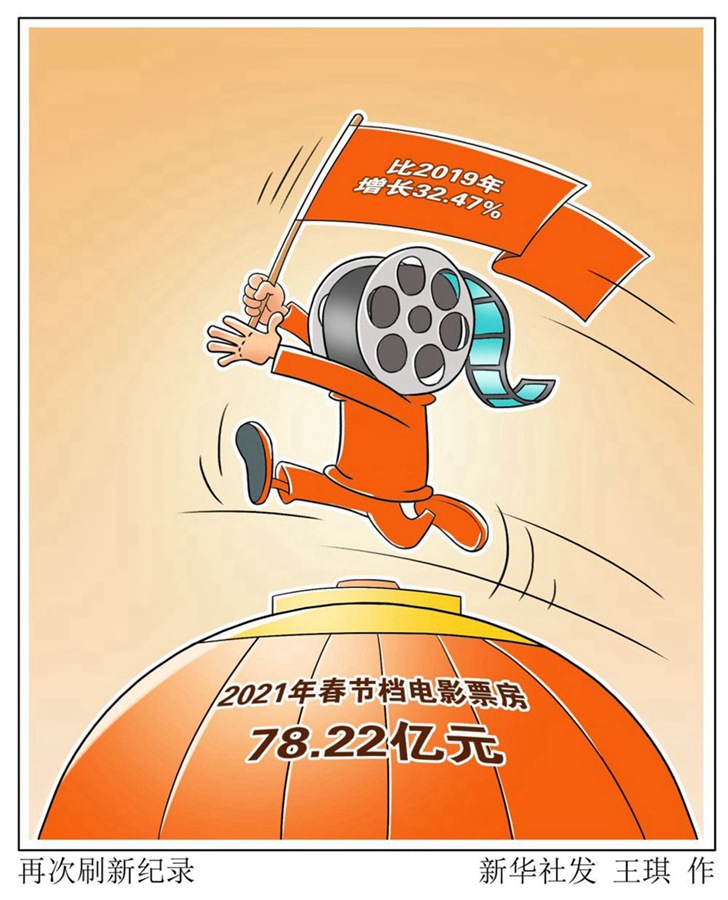 國家電影局數(shù)據(jù)顯示,除夕至正月初六,全國電影票房達78.22億元,再次刷新春節(jié)檔票房紀錄;支付寶數(shù)據(jù)顯示,春節(jié)日均觀影買票人數(shù)增加超560%。