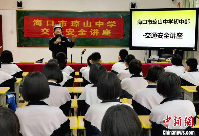 ??诠步痪M(jìn)校園開展“交通安全第一課”活動(dòng)。海口交警供圖