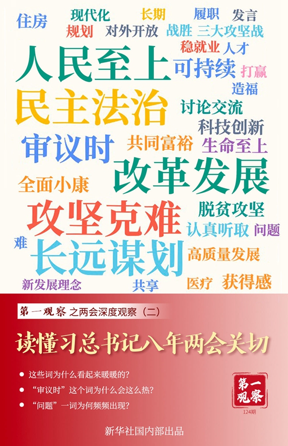 “去年有多少人娶媳婦兒”“農(nóng)家樂辦起來了嗎”……與長期扎根一線的代表委員面對(duì)面,總書記熱切詢問百姓冷暖;“養(yǎng)老”“穩(wěn)就業(yè)”“醫(yī)療”“住房”“社會(huì)救助”……著力解決人民群眾最關(guān)心最直接最現(xiàn)實(shí)的問題,總書記把它放在最突出位置。