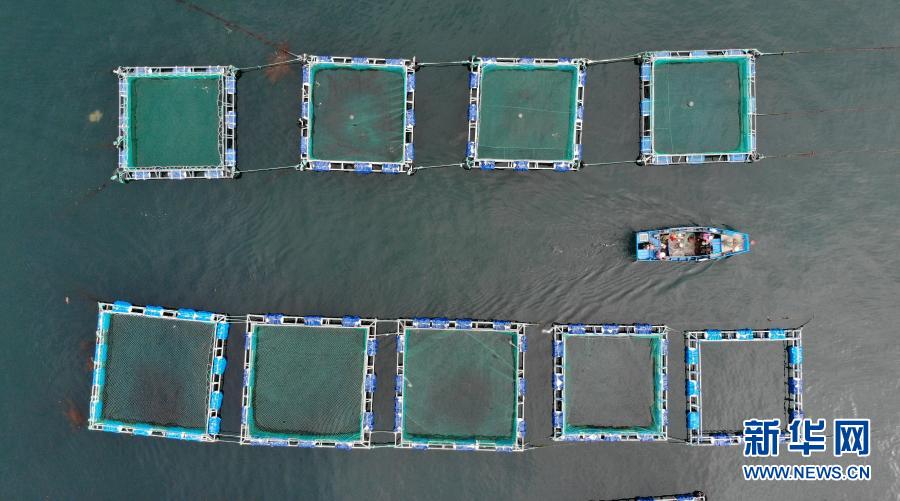 一艘漁船駛過山東省長島綜合試驗區(qū)南隍城島海上養(yǎng)殖區(qū)(2020年8月8日攝,無人機照片)。近年來,山東省長島綜合試驗區(qū)南隍城島在嚴守海洋生態(tài)紅線的基礎(chǔ)上,有序發(fā)展網(wǎng)箱養(yǎng)殖、立體生態(tài)養(yǎng)殖等特色海洋經(jīng)濟。 新華社記者 王凱 攝