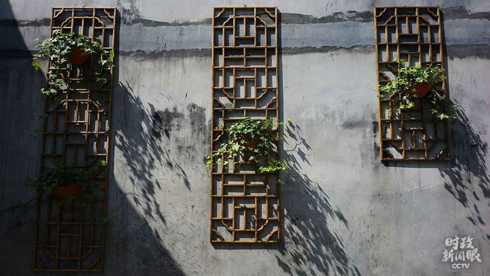 △走進郎官巷,可以看到街區(qū)外的高樓,新舊建筑風(fēng)格交相輝映。(總臺央視記者彭漢明拍攝)