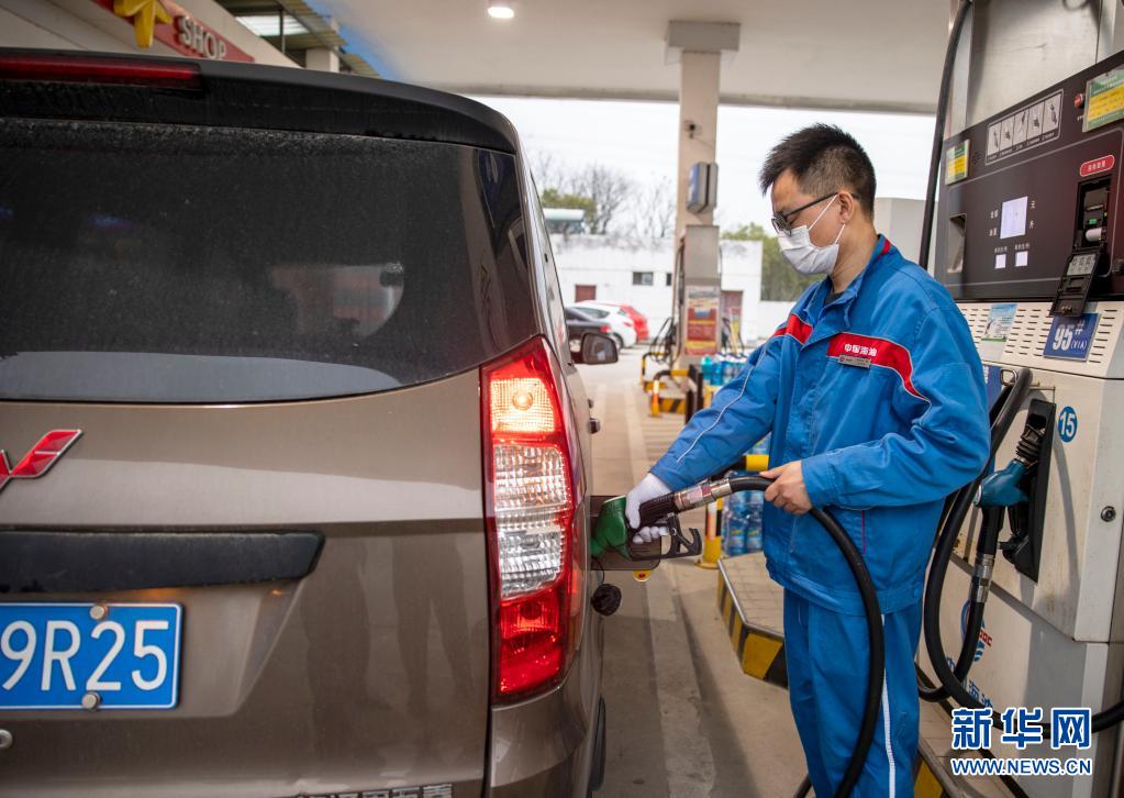 3月31日,在江蘇省連云港市連云區(qū)一加油站,工作人員給車輛加油。新華社發(fā)(王春 攝)