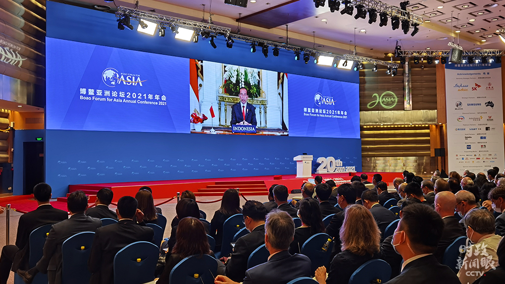 △印尼總統(tǒng)佐科、韓國總統(tǒng)文在寅、柬埔寨首相洪森應(yīng)邀以視頻方式出席年會。(總臺央視記者胡瑋拍攝)