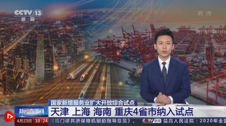 央視網(wǎng)消息:商務部今天(4月23日)舉行專題新聞發(fā)布會,外資司有關(guān)負責人介紹,在支持北京建設國家服務業(yè)擴大開放綜合示范區(qū)的同時,日前,國務院批復同意將天津、上海、海南、重慶4省市納入服務業(yè)擴大開放綜合試點。