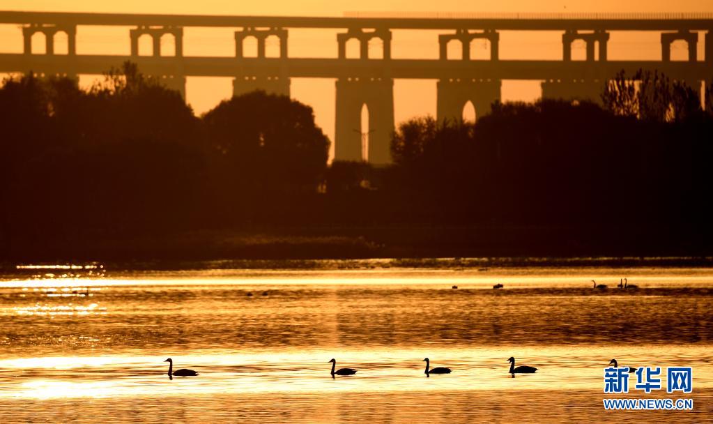 白天鵝在三門峽天鵝湖國家城市濕地公園內(nèi)棲息(2019年11月14日攝)。新華社記者 郝源 攝