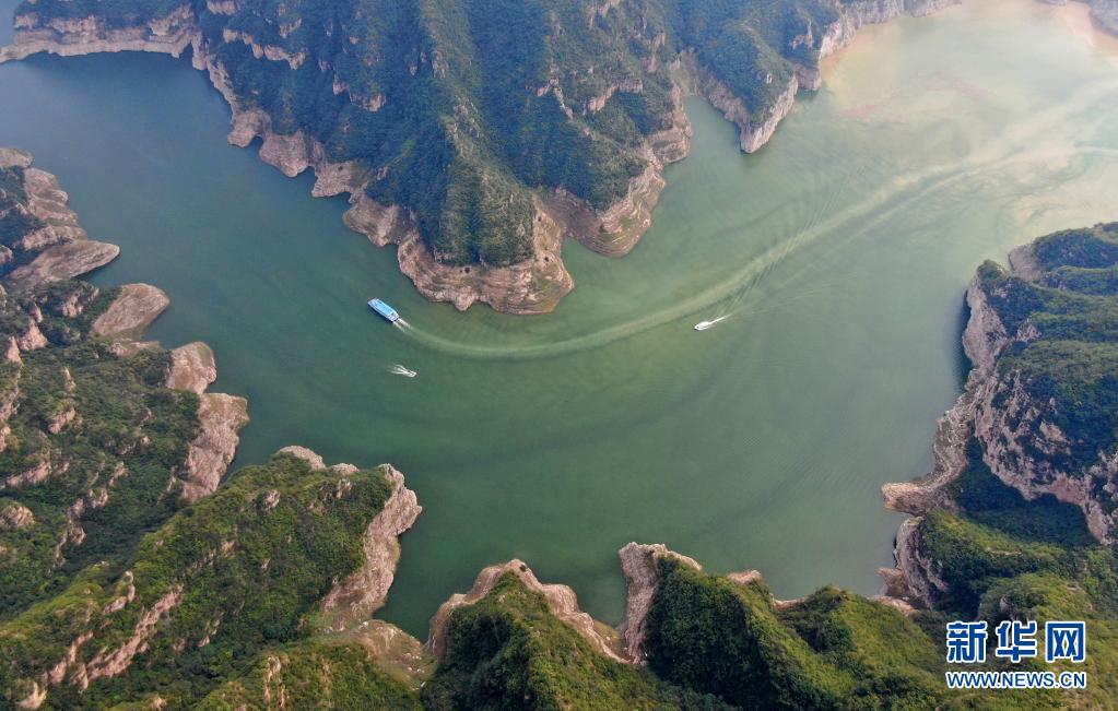 這是在河南濟(jì)源拍攝的“黃河三峽”景色(2020年9月12日攝,無人機(jī)照片)。新華社記者 郝源 攝