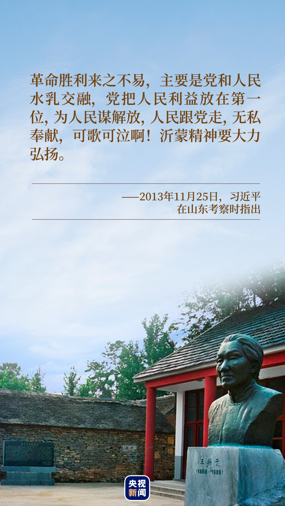 “在沂蒙這片紅色土地上,誕生了無數(shù)可歌可泣的英雄兒女,沂蒙六姐妹、沂蒙母親、沂蒙紅嫂的事跡十分感人。”習(xí)近平總書記深情地說。2013年11月25日,習(xí)近平在視察山東沂蒙革命老區(qū)臨沂期間,專程前往華東革命烈士陵園,向革命烈士紀(jì)念塔敬獻(xiàn)花籃并參觀沂蒙精神展。