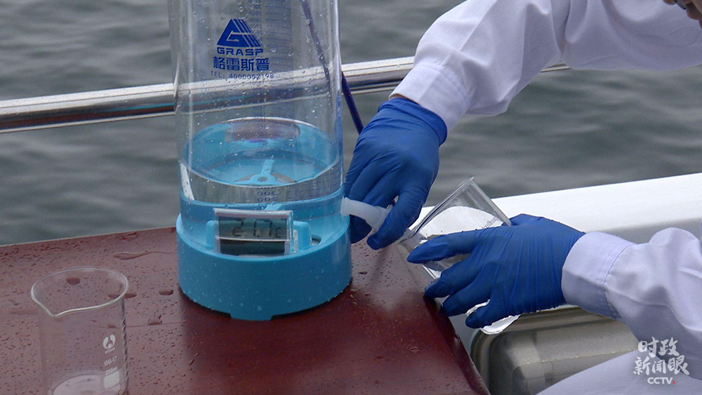 △這是考察當(dāng)天,現(xiàn)場(chǎng)從丹江口水庫取出的水樣。(總臺(tái)央視記者李錚拍攝)