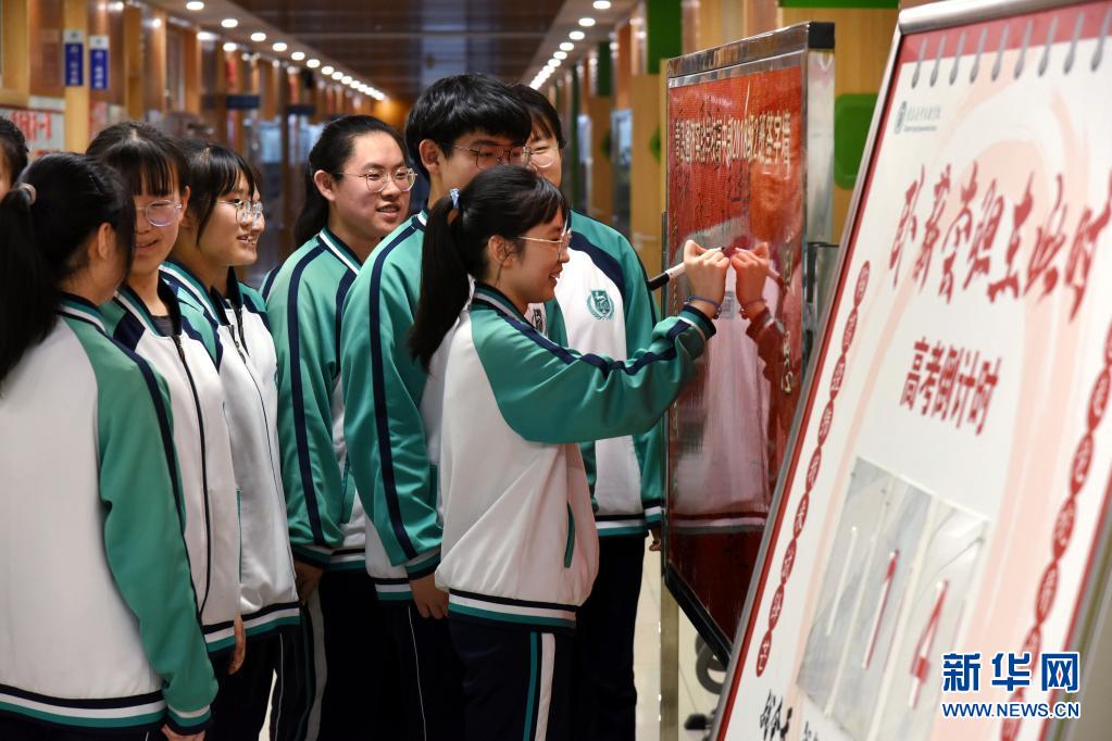5月23日,青島通濟(jì)實(shí)驗(yàn)學(xué)校高三學(xué)生在簽名板上留言相互鼓勵(lì)。新華社記者 李紫恒 攝