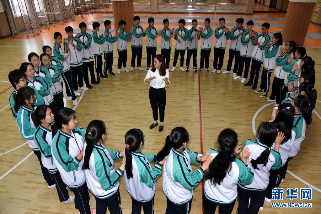 5月23日,青島通濟(jì)實(shí)驗(yàn)學(xué)校高三學(xué)生在進(jìn)行“激情節(jié)拍”游戲。新華社記者 李紫恒 攝