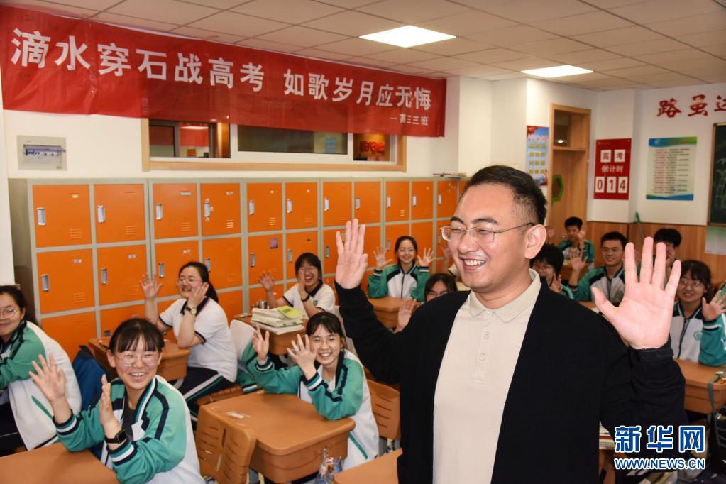 5月23日,在青島通濟(jì)實(shí)驗(yàn)學(xué)校,高三學(xué)生在老師的帶領(lǐng)下一起做減壓操。新華社記者 李紫恒 攝
