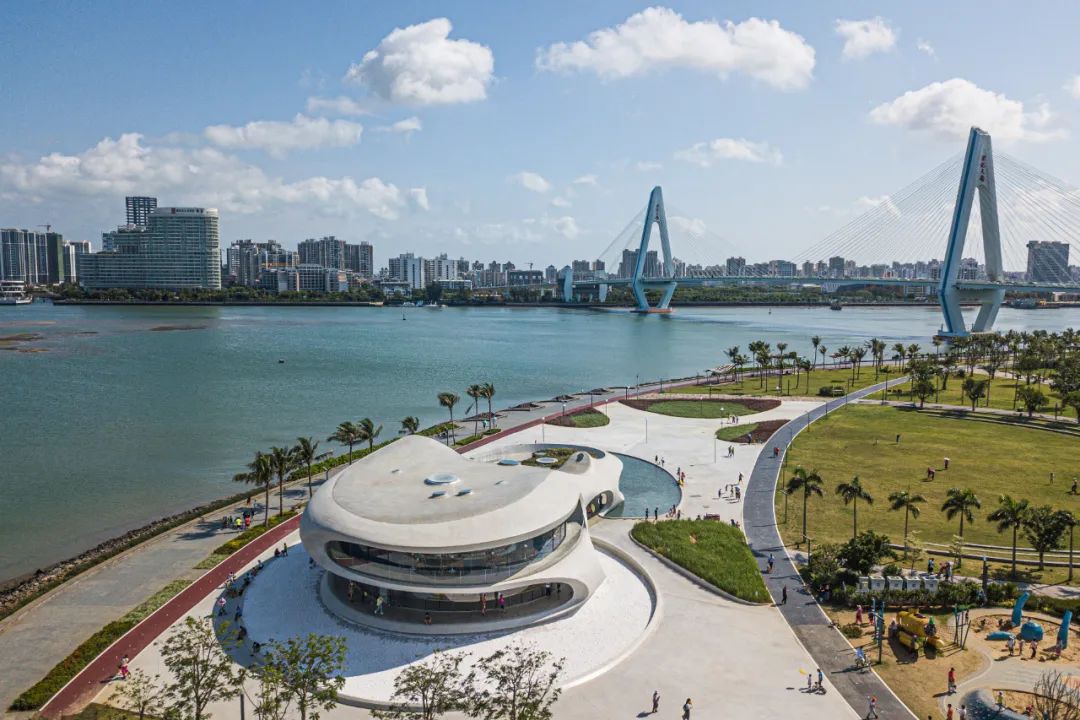 ▲“十四五”開局之年,也是海南全面深化改革開放和加快建設(shè)自由貿(mào)易港關(guān)鍵之年。這是5月3日在??谂臄z的云洞圖書館,遠處是海口地標世紀大橋(無人機照片)。新華社記者 蒲曉旭 攝
