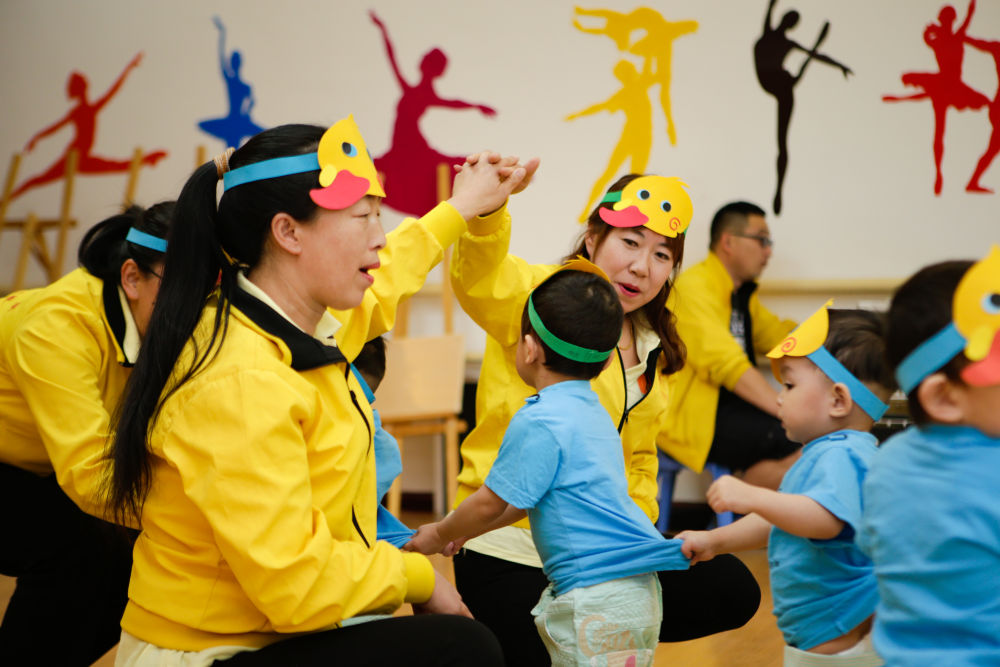 在呼和浩特市兒童福利院舉行的“心懷感恩·多彩六一”文藝演出活動上,孩子們和老師一起表演(2018年6月1日攝)。新華社記者 虞東升 攝