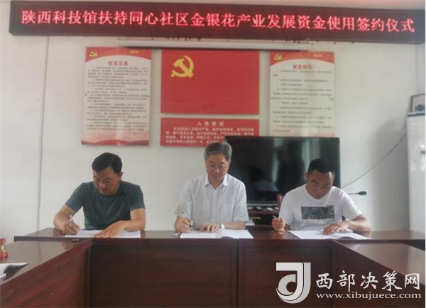 實地調(diào)研結(jié)束,在中廠鎮(zhèn)同心社區(qū)進行了陜西科技館扶持同心社區(qū)金銀花產(chǎn)業(yè)發(fā)展資金使用框架協(xié)議簽約儀式。陜西科學技術(shù)館館長王曉東、同心社區(qū)書記王順明、白河縣沐之然農(nóng)業(yè)綜合開發(fā)有限公司監(jiān)事王利群共同簽署了銀花產(chǎn)業(yè)發(fā)展資金使用框架協(xié)議,標志著以金銀花產(chǎn)業(yè)發(fā)展為龍頭鄉(xiāng)村振興工作進入快速發(fā)展階段。