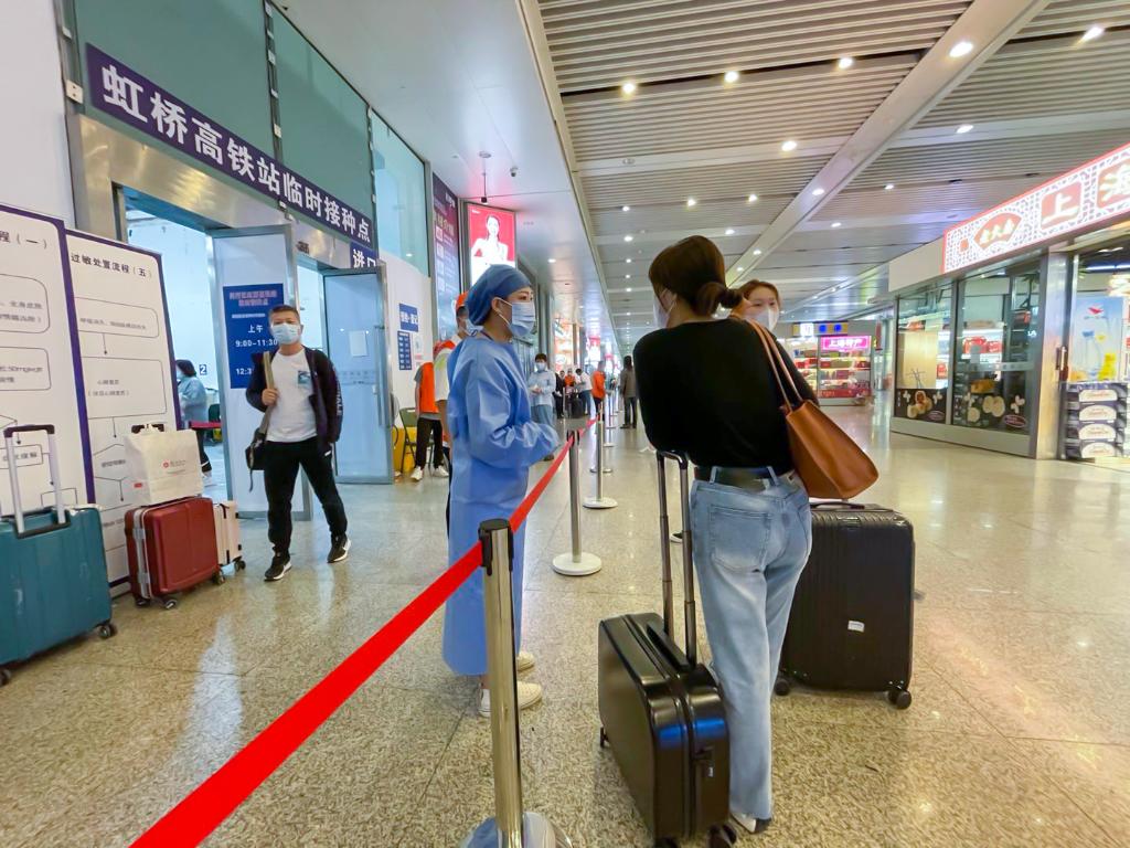 2021年5月29日,上海,旅客在上海虹橋火車(chē)站臨時(shí)疫苗接種點(diǎn)向醫(yī)務(wù)人員咨詢(xún)。新華社記者 黃安琪 攝