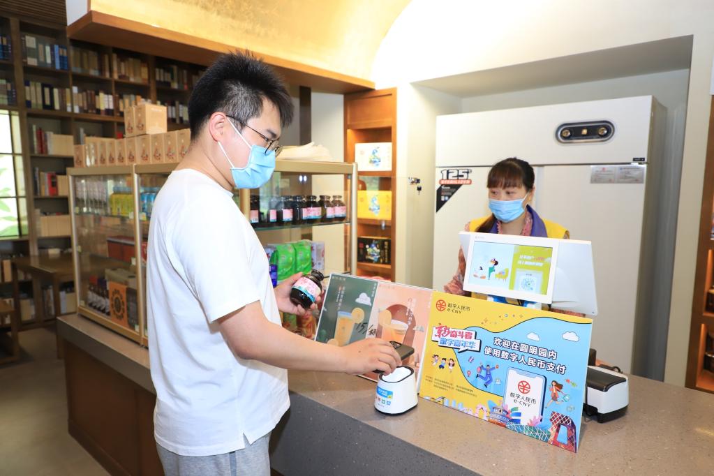 圖為圓明園景區(qū)內(nèi),一名顧客正使用數(shù)字人民幣購(gòu)買(mǎi)商品。受訪(fǎng)者供圖