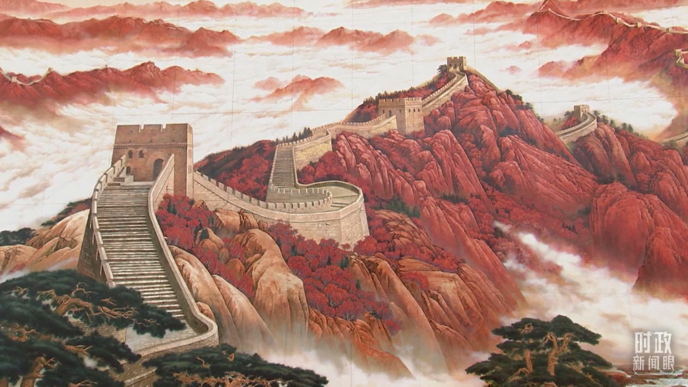 △氣勢磅礴的長城主題漆畫(總臺央視記者王策拍攝)