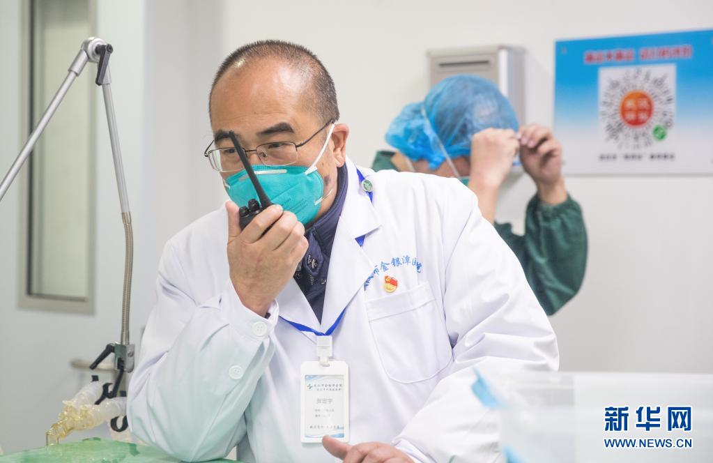 張定宇在武漢金銀潭醫(yī)院綜合病區(qū)樓聯(lián)系、協(xié)調(diào)工作(2020年1月27日攝)。新華社發(fā)(柯皓 攝)