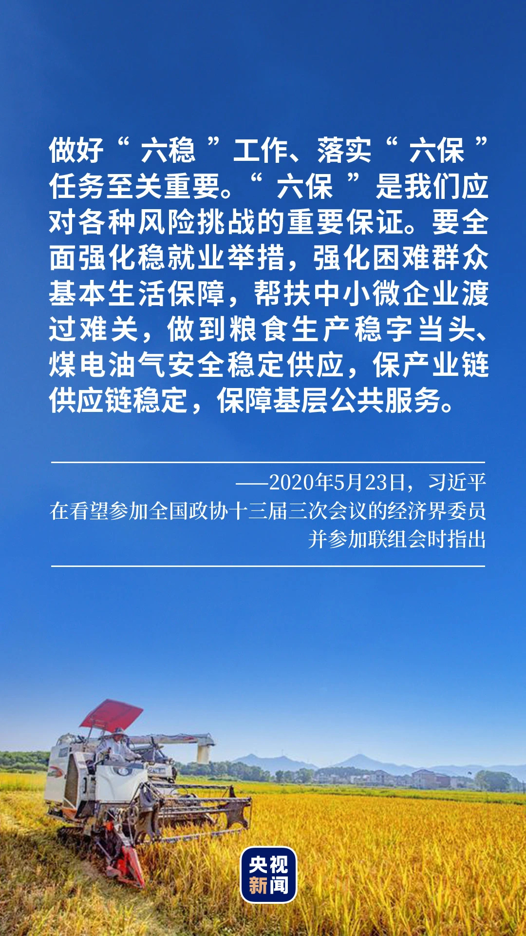 扎實(shí)做好“六穩(wěn)”工作、全面落實(shí)“六保”任務(wù),關(guān)系經(jīng)濟(jì)發(fā)展和社會穩(wěn)定大局。面對常態(tài)化疫情防控與經(jīng)濟(jì)社會發(fā)展雙重任務(wù),以習(xí)近平同志為核心的黨中央運(yùn)籌帷幄、沉著應(yīng)對,強(qiáng)化問題導(dǎo)向、夯實(shí)底線思維、彰顯民生情懷。
