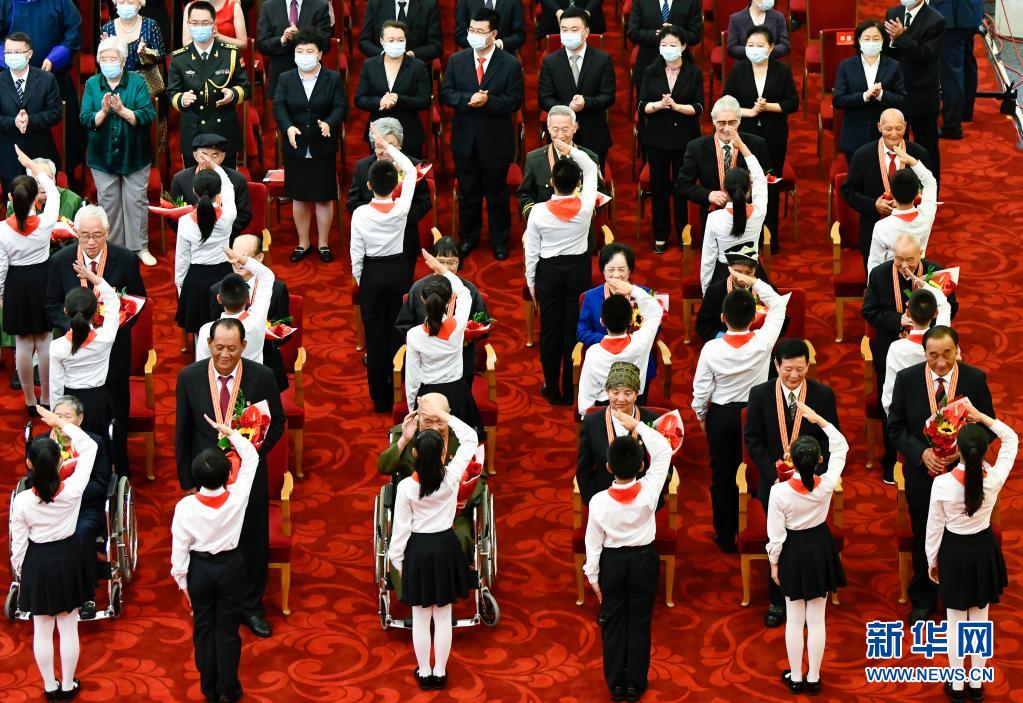 6月29日,慶祝中國共產(chǎn)黨成立100周年“七一勛章”頒授儀式在北京人民大會堂金色大廳隆重舉行。這是“七一勛章”獲得者張桂梅向青少年致意。新華社記者 岳月偉 攝