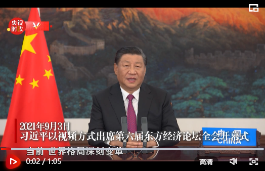 國(guó)家主席習(xí)近平9月3日應(yīng)邀以視頻方式出席第六屆東方經(jīng)濟(jì)論壇全會(huì)開(kāi)幕式并致辭。