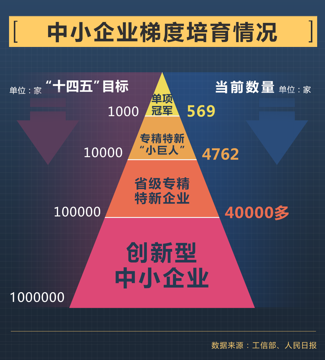 為了強(qiáng)化產(chǎn)業(yè)鏈韌性,工信部正在梯度培育優(yōu)質(zhì)企業(yè)。“十四五”期間,我國將培育1萬家專精特新“小巨人”企業(yè),創(chuàng)新型中小企業(yè)將達(dá)到百萬家。“小巨人”是梯度培育體系中,推動(dòng)中小企業(yè)由小到大、由大到強(qiáng)、由強(qiáng)變優(yōu)的關(guān)鍵交匯點(diǎn)。