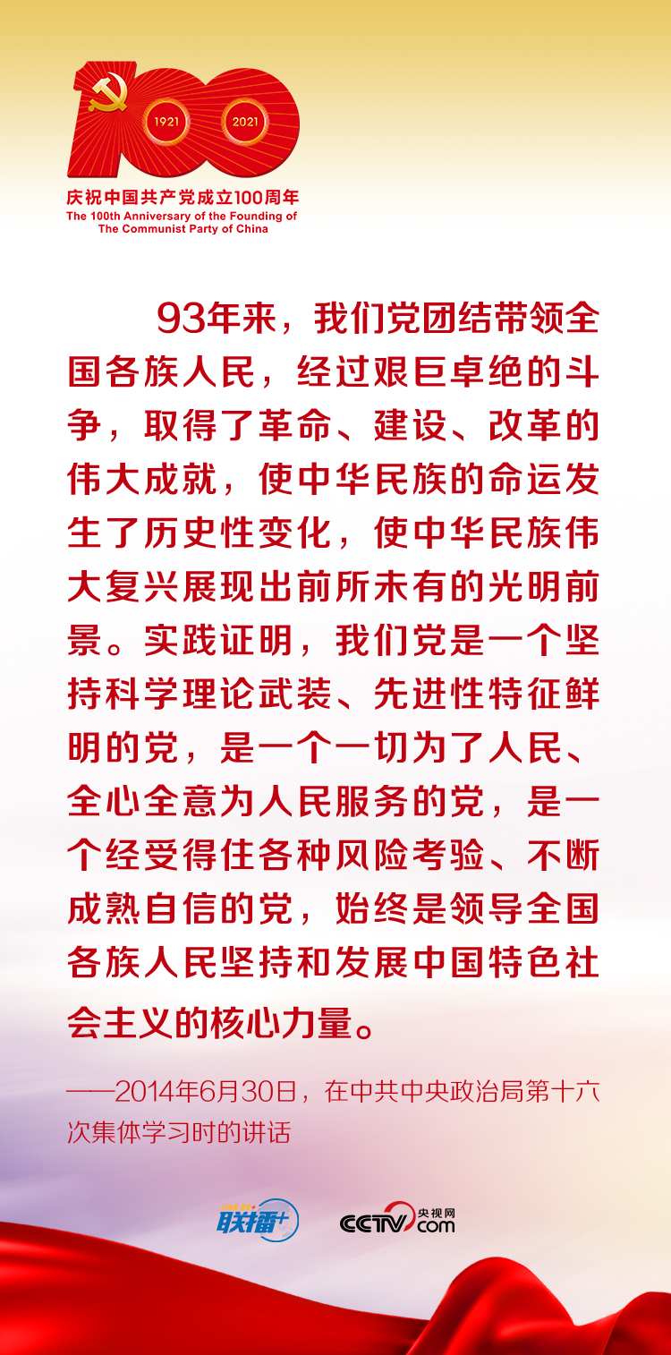 “中華民族近代以來(lái)180多年的歷史、中國(guó)共產(chǎn)黨成立以來(lái)100年的歷史、中華人民共和國(guó)成立以來(lái)70多年的歷史都充分證明,沒(méi)有中國(guó)共產(chǎn)黨,就沒(méi)有新中國(guó),就沒(méi)有中華民族偉大復(fù)興。歷史和人民選擇了中國(guó)共產(chǎn)黨。”在慶祝中國(guó)共產(chǎn)黨成立100周年大會(huì)上,習(xí)近平總書(shū)記的重要講話擲地有聲、意蘊(yùn)深遠(yuǎn)。