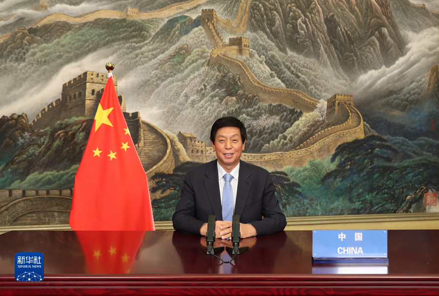 全國(guó)人大常委會(huì)委員長(zhǎng)栗戰(zhàn)書(shū)7日在第五次世界議長(zhǎng)大會(huì)發(fā)表視頻致辭。